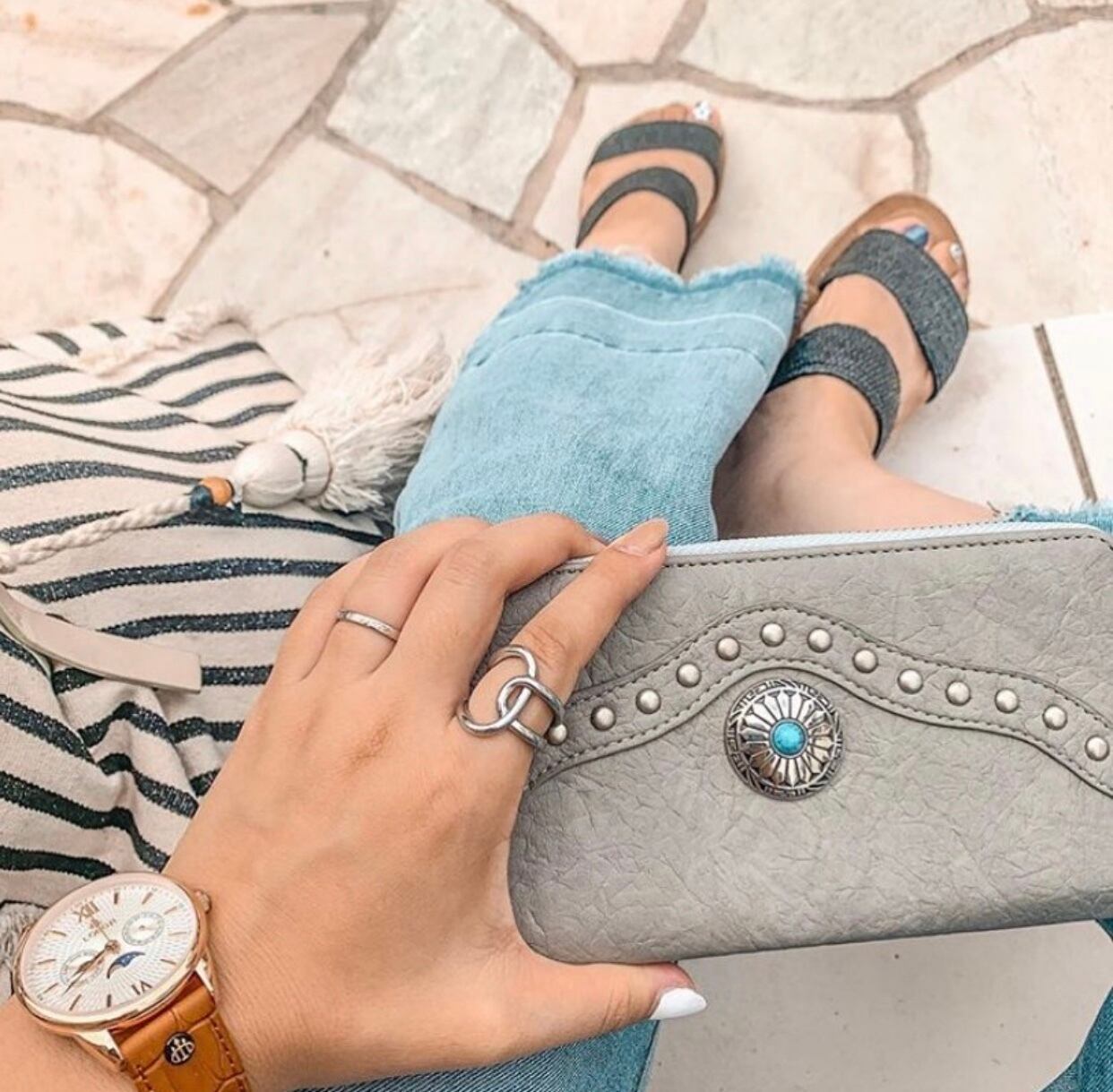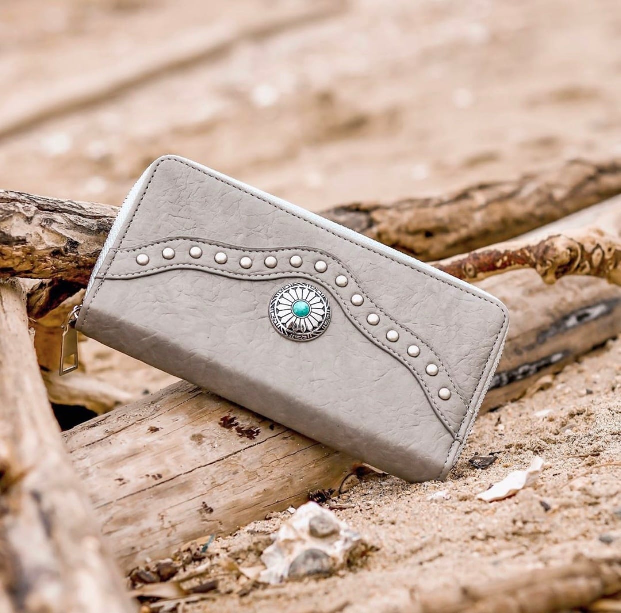 長財布♡西海岸 ビッグコンチョ付き ウォレット グレー